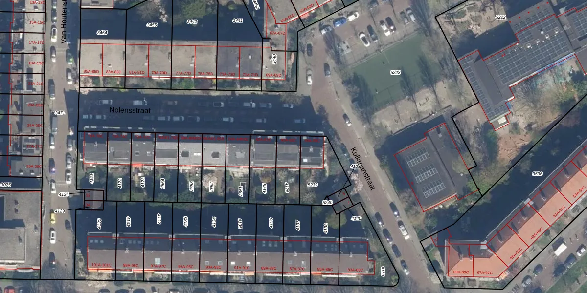 Het perceel waarop Nolensstraat 60-C staat heeft een oppervlakte van 188 m². Dit is een middelgroot perceel. De perceeloppervlakte wordt geregistreerd door het Kadaster. Gedetailleerde informatie over de maten van dit perceel kunt u vinden in het rapport Kadastrale kaart met maatvoering van Nolensstraat 60-C.