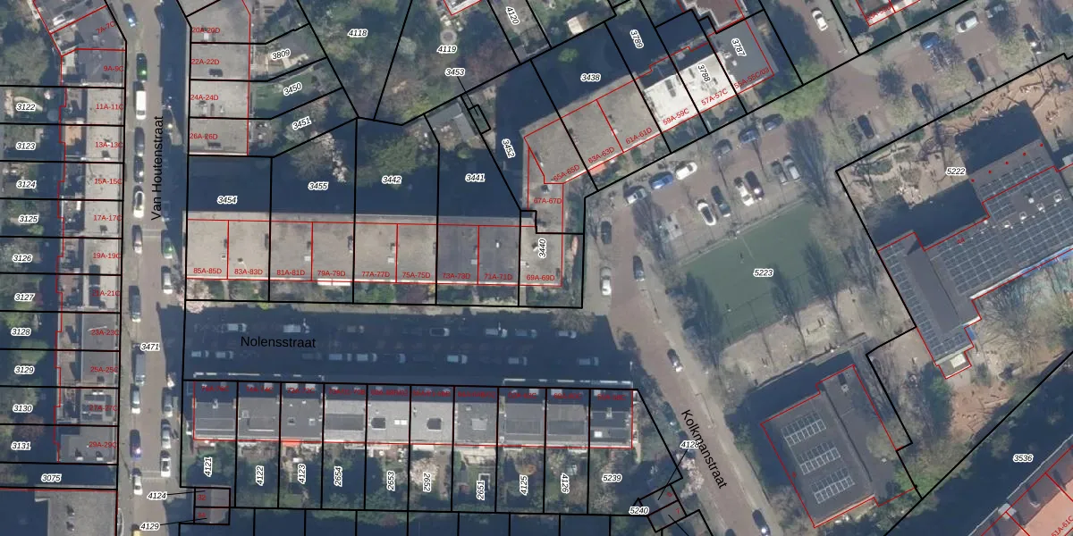 Het perceel waarop Nolensstraat 69-A staat heeft een oppervlakte van 180 m². Dit is een middelgroot perceel. De perceeloppervlakte wordt geregistreerd door het Kadaster. Gedetailleerde informatie over de maten van dit perceel kunt u vinden in het rapport Kadastrale kaart met maatvoering van Nolensstraat 69-A.