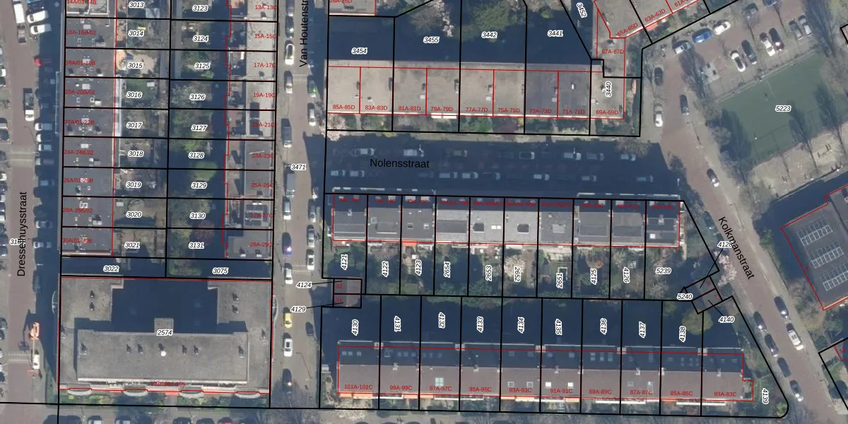 Het perceel waarop Nolensstraat 72-C staat heeft een oppervlakte van 188 m². Dit is een middelgroot perceel. De perceeloppervlakte wordt geregistreerd door het Kadaster. Gedetailleerde informatie over de maten van dit perceel kunt u vinden in het rapport Kadastrale kaart met maatvoering van Nolensstraat 72-C.