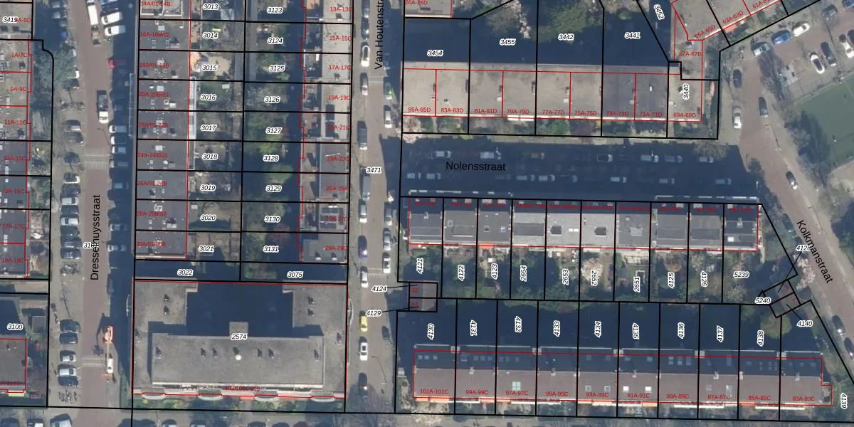 Nolensstraat 76-B is gelegen op kadastraal perceel RTD10Z4121. Deze kadastrale aanduiding is uniek en wordt gebruikt door het Kadaster om eigendomsrechten en andere zakelijke rechten vast te leggen. Het perceel maakt onderdeel uit van de kadastrale gemeente Rotterdam.