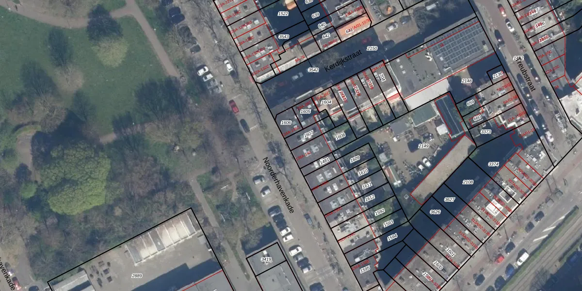 Het perceel waarop Noorderhavenkade 136-C staat heeft een oppervlakte van 87 m². Dit is een klein perceel. De perceeloppervlakte wordt geregistreerd door het Kadaster. Gedetailleerde informatie over de maten van dit perceel kunt u vinden in het rapport Kadastrale kaart met maatvoering van Noorderhavenkade 136-C.