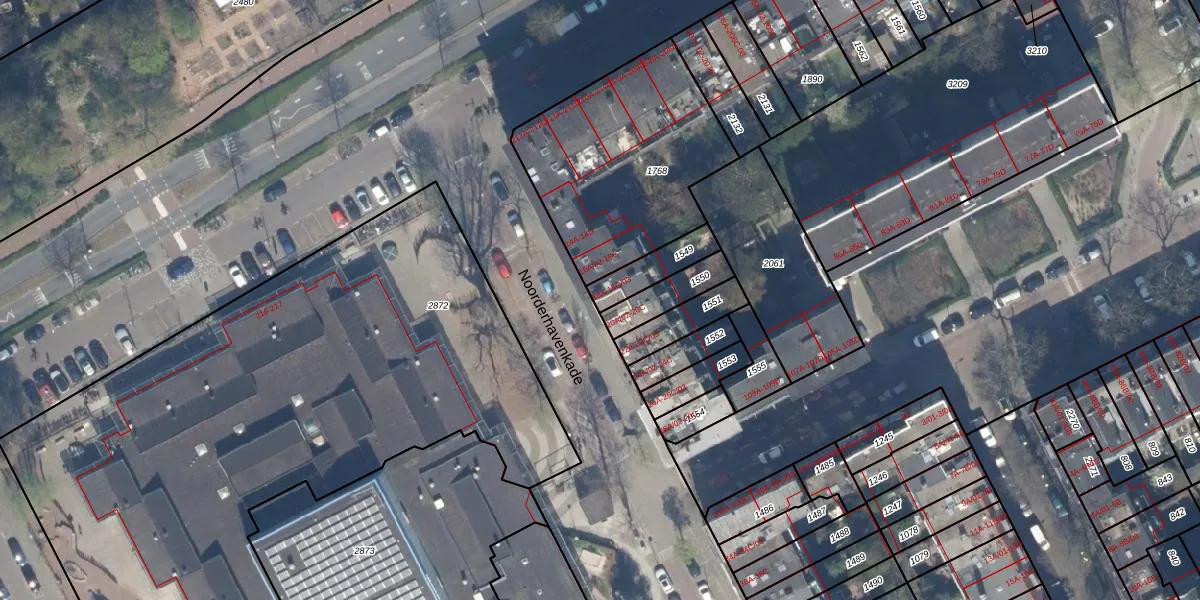 Noorderhavenkade 18-A is gelegen op kadastraal perceel RTD10AB1549. Deze kadastrale aanduiding is uniek en wordt gebruikt door het Kadaster om eigendomsrechten en andere zakelijke rechten vast te leggen. Het perceel maakt onderdeel uit van de kadastrale gemeente Rotterdam.