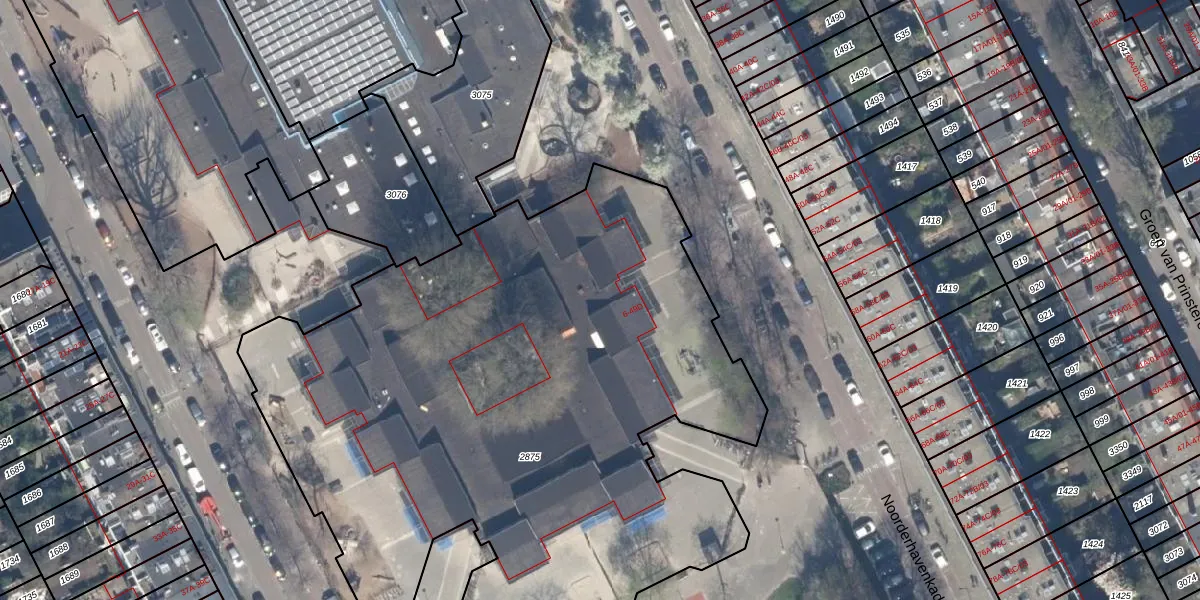 Het perceel waarop Noorderhavenkade 32 staat heeft een oppervlakte van 4373 m². Dit is een zeer groot perceel. De perceeloppervlakte wordt geregistreerd door het Kadaster. Gedetailleerde informatie over de maten van dit perceel kunt u vinden in het rapport Kadastrale kaart met maatvoering van Noorderhavenkade 32.