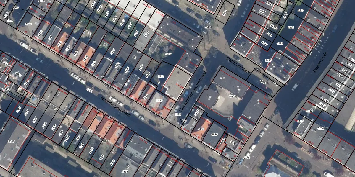 Het perceel waarop Noordmolendwarsstraat 39-A staat heeft een oppervlakte van 307 m². Dit is een groot perceel. De perceeloppervlakte wordt geregistreerd door het Kadaster. Gedetailleerde informatie over de maten van dit perceel kunt u vinden in het rapport Kadastrale kaart met maatvoering van Noordmolendwarsstraat 39-A.