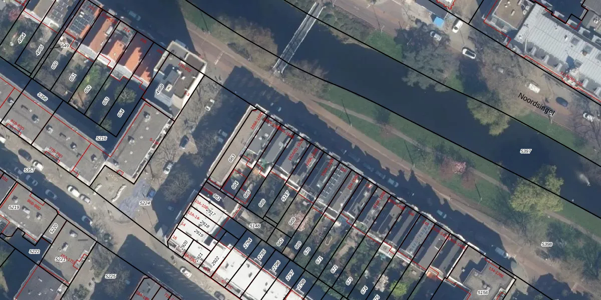 Het perceel waarop Noordsingel 162-B staat heeft een oppervlakte van 191 m². Dit is een middelgroot perceel. De perceeloppervlakte wordt geregistreerd door het Kadaster. Gedetailleerde informatie over de maten van dit perceel kunt u vinden in het rapport Kadastrale kaart met maatvoering van Noordsingel 162-B.
