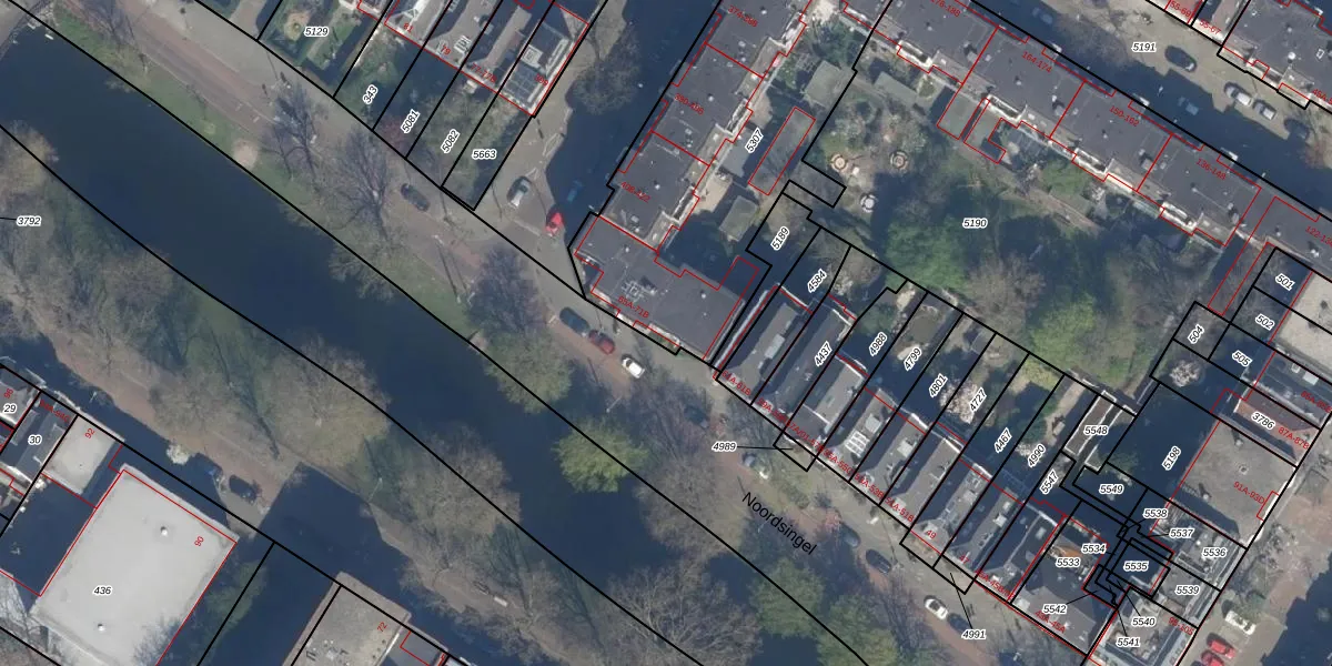 Noordsingel 65-B is gelegen op kadastraal perceel RTD08X5307. Deze kadastrale aanduiding is uniek en wordt gebruikt door het Kadaster om eigendomsrechten en andere zakelijke rechten vast te leggen. Het perceel maakt onderdeel uit van de kadastrale gemeente Rotterdam.