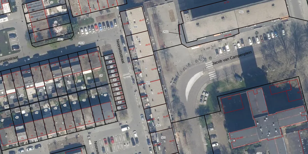 Het perceel waarop Noorwitsstraat 100 staat heeft een oppervlakte van 490 m². Dit is een groot perceel. De perceeloppervlakte wordt geregistreerd door het Kadaster. Gedetailleerde informatie over de maten van dit perceel kunt u vinden in het rapport Kadastrale kaart met maatvoering van Noorwitsstraat 100.