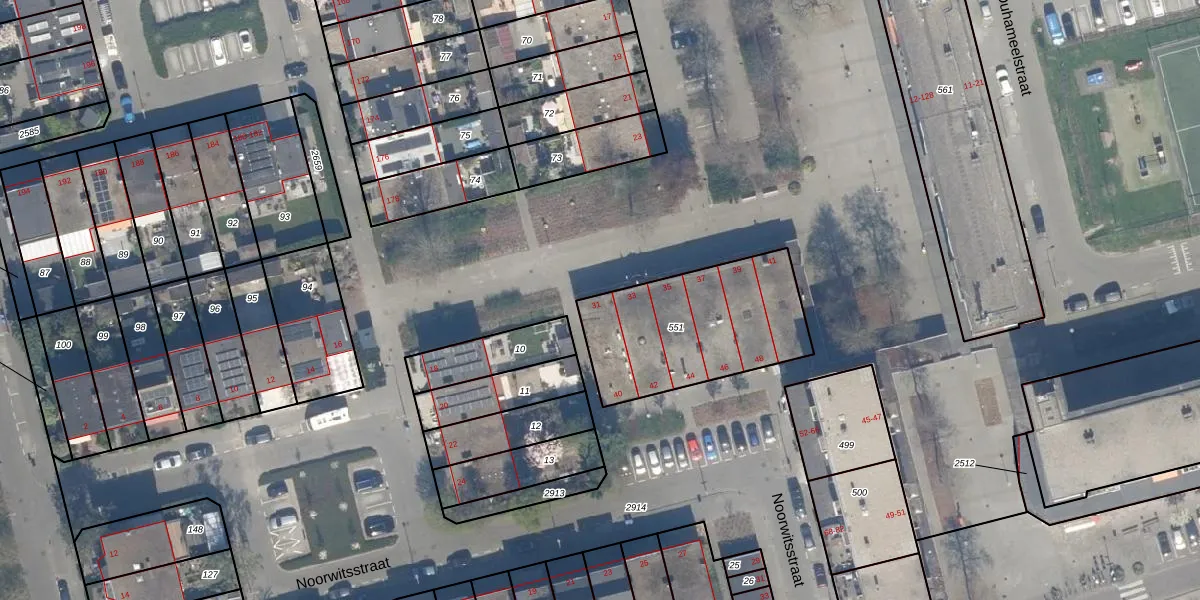 Het perceel waarop Noorwitsstraat 40 staat heeft een oppervlakte van 664 m². Dit is een groot perceel. De perceeloppervlakte wordt geregistreerd door het Kadaster. Gedetailleerde informatie over de maten van dit perceel kunt u vinden in het rapport Kadastrale kaart met maatvoering van Noorwitsstraat 40.