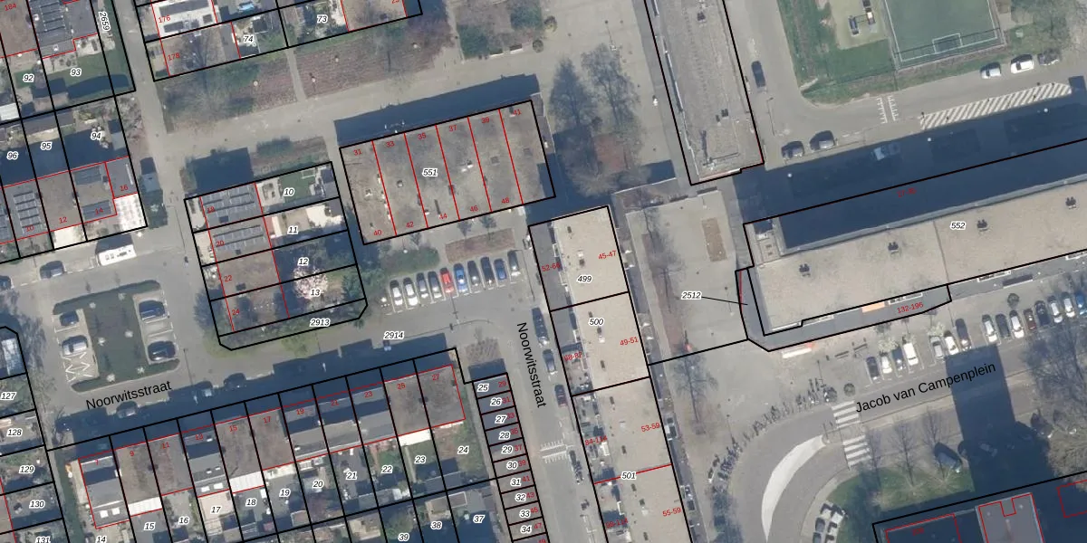 Het perceel waarop Noorwitsstraat 62 staat heeft een oppervlakte van 246 m². Dit is een middelgroot perceel. De perceeloppervlakte wordt geregistreerd door het Kadaster. Gedetailleerde informatie over de maten van dit perceel kunt u vinden in het rapport Kadastrale kaart met maatvoering van Noorwitsstraat 62.
