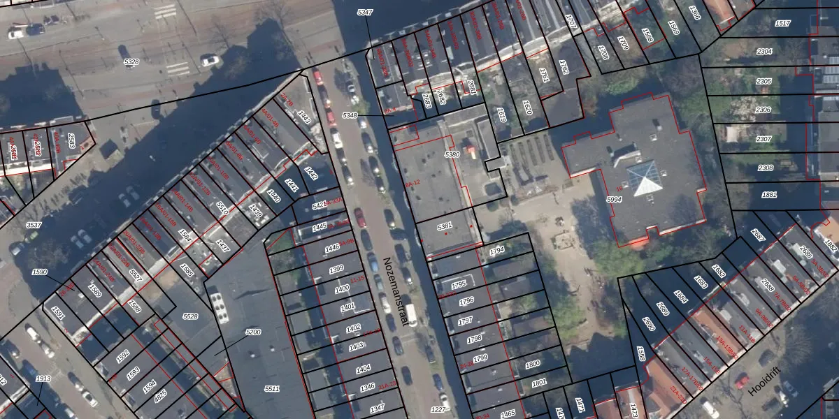 Nozemanstraat 12 is gelegen op kadastraal perceel DHV00C5380. Deze kadastrale aanduiding is uniek en wordt gebruikt door het Kadaster om eigendomsrechten en andere zakelijke rechten vast te leggen. Het perceel maakt onderdeel uit van de kadastrale gemeente Delfshaven.