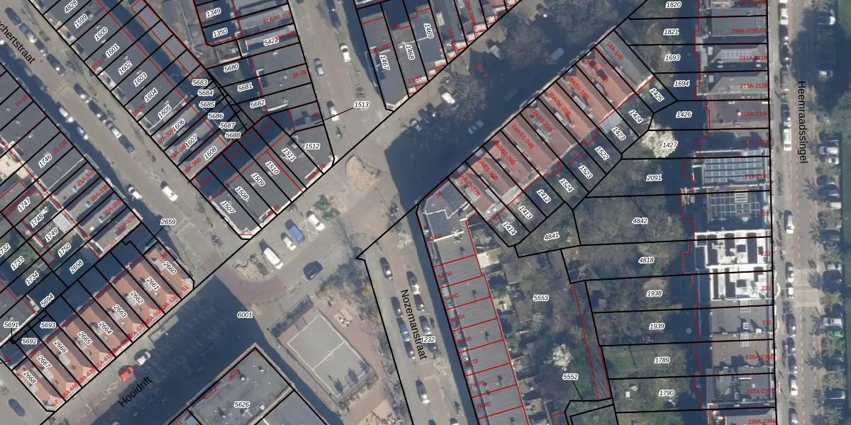 Het perceel waarop Nozemanstraat 48 staat heeft een oppervlakte van 1935 m². Dit is een zeer groot perceel. De perceeloppervlakte wordt geregistreerd door het Kadaster. Gedetailleerde informatie over de maten van dit perceel kunt u vinden in het rapport Kadastrale kaart met maatvoering van Nozemanstraat 48.