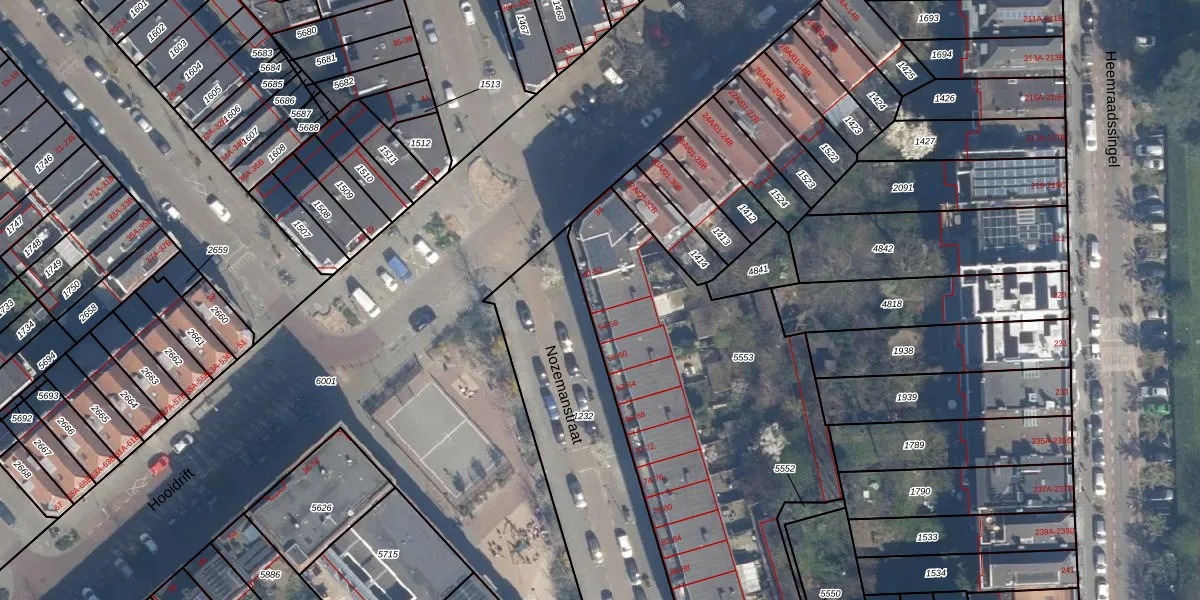 Het perceel waarop Nozemanstraat 52 staat heeft een oppervlakte van 1935 m². Dit is een zeer groot perceel. De perceeloppervlakte wordt geregistreerd door het Kadaster. Gedetailleerde informatie over de maten van dit perceel kunt u vinden in het rapport Kadastrale kaart met maatvoering van Nozemanstraat 52.