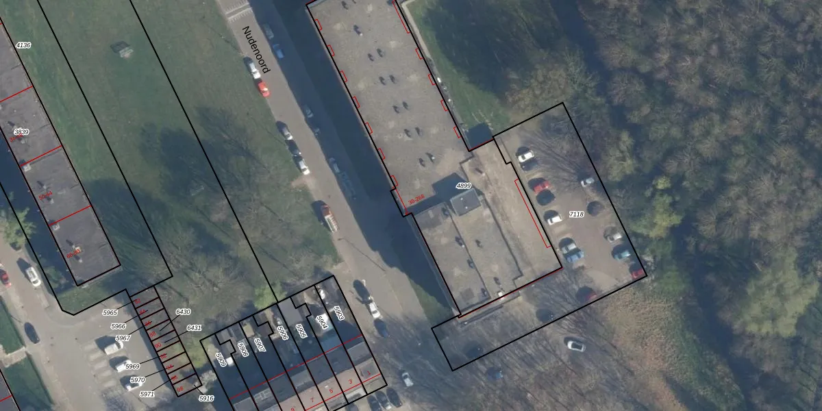 Het perceel waarop Nudenoord 252 staat heeft een oppervlakte van 1982 m². Dit is een zeer groot perceel. De perceeloppervlakte wordt geregistreerd door het Kadaster. Gedetailleerde informatie over de maten van dit perceel kunt u vinden in het rapport Kadastrale kaart met maatvoering van Nudenoord 252.