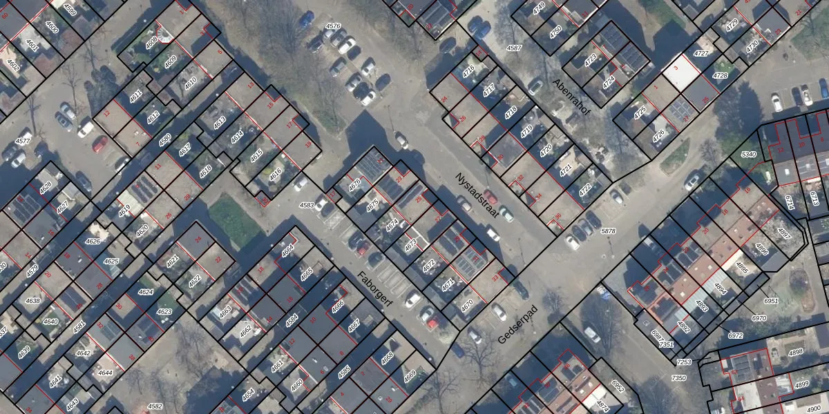 Gebruik de zoekbalk of klik op een perceel voor informatie over de adressen binnen dit perceel.