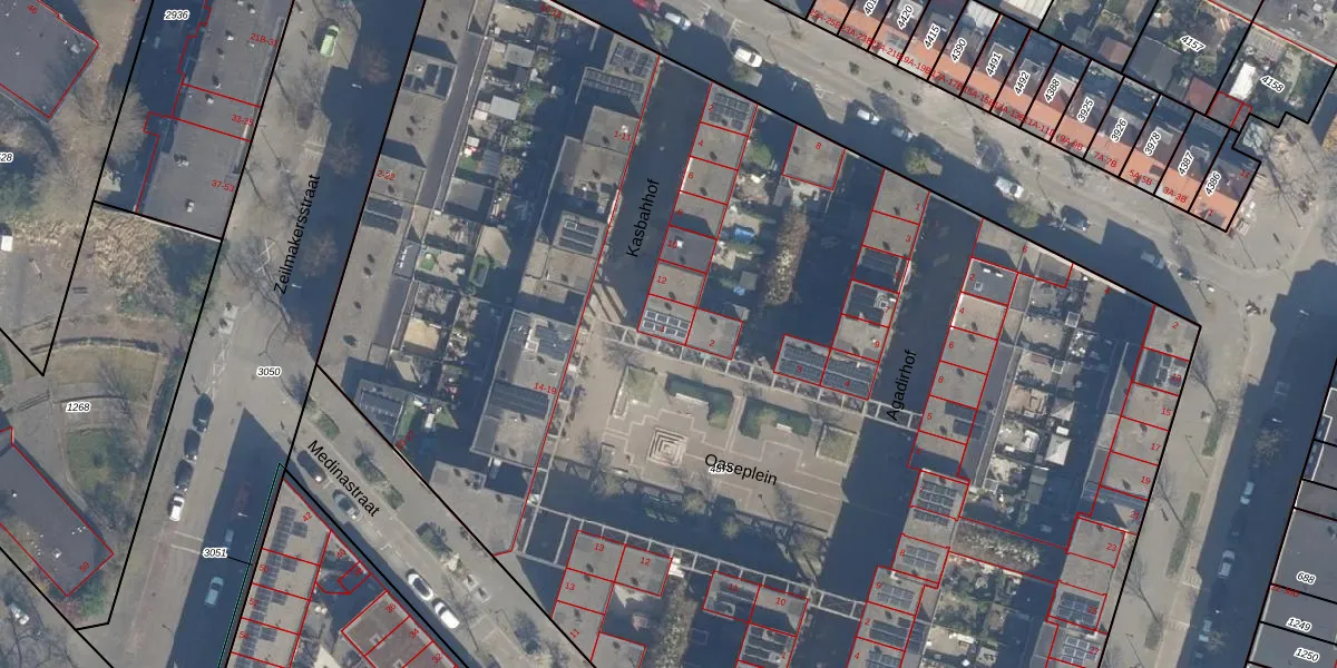 Het perceel waarop Oaseplein 1 staat heeft een oppervlakte van 1,1 ha. Dit is een zeer groot perceel. De perceeloppervlakte wordt geregistreerd door het Kadaster. Gedetailleerde informatie over de maten van dit perceel kunt u vinden in het rapport Kadastrale kaart met maatvoering van Oaseplein 1.