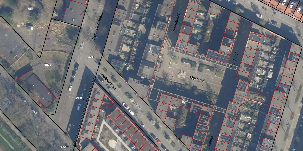 Het perceel waarop Oaseplein 16 staat heeft een oppervlakte van 1,1 ha. Dit is een zeer groot perceel. De perceeloppervlakte wordt geregistreerd door het Kadaster. Gedetailleerde informatie over de maten van dit perceel kunt u vinden in het rapport Kadastrale kaart met maatvoering van Oaseplein 16.