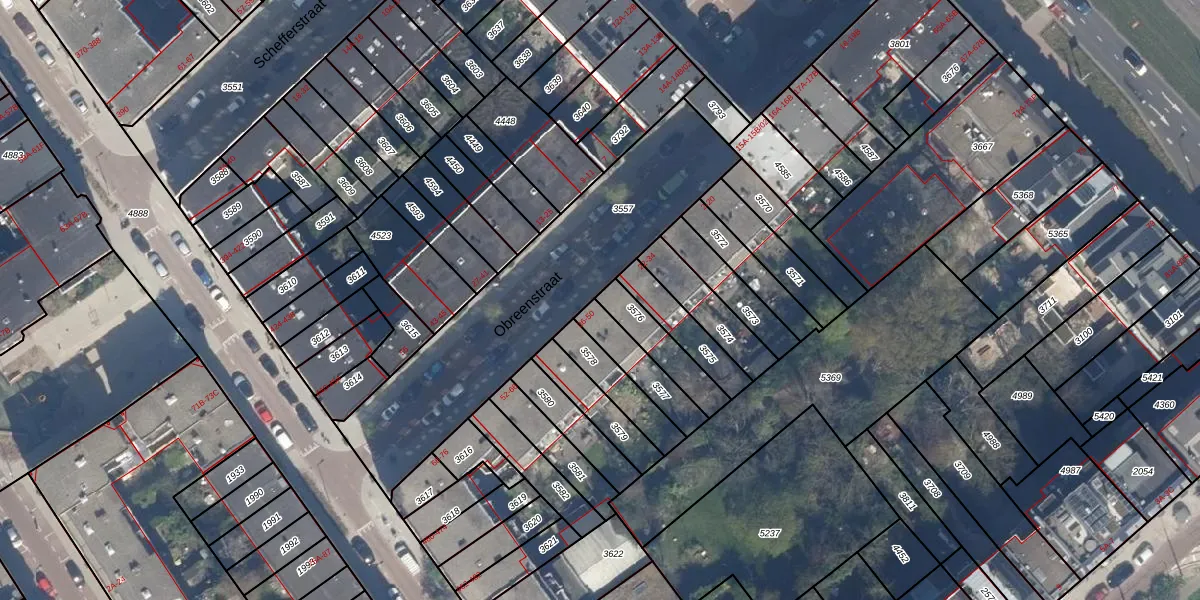 Obreenstraat 42 is gelegen op kadastraal perceel RTD06S3576. Deze kadastrale aanduiding is uniek en wordt gebruikt door het Kadaster om eigendomsrechten en andere zakelijke rechten vast te leggen. Het perceel maakt onderdeel uit van de kadastrale gemeente Rotterdam.