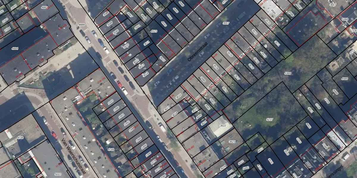 Het perceel waarop Obreenstraat 74 staat heeft een oppervlakte van 76 m². Dit is een klein perceel. De perceeloppervlakte wordt geregistreerd door het Kadaster. Gedetailleerde informatie over de maten van dit perceel kunt u vinden in het rapport Kadastrale kaart met maatvoering van Obreenstraat 74.