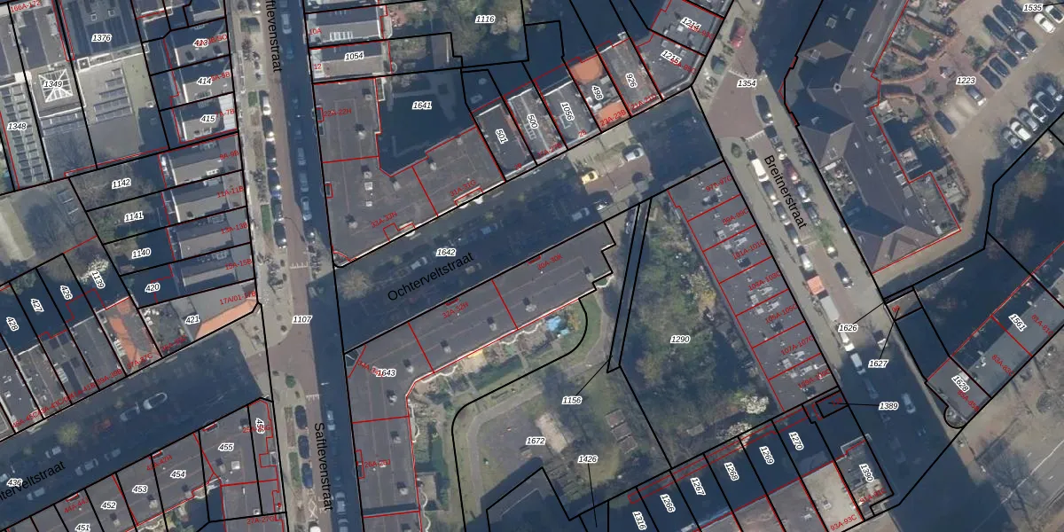 Het perceel waarop Ochterveltstraat 30-H staat heeft een oppervlakte van 1532 m². Dit is een zeer groot perceel. De perceeloppervlakte wordt geregistreerd door het Kadaster. Gedetailleerde informatie over de maten van dit perceel kunt u vinden in het rapport Kadastrale kaart met maatvoering van Ochterveltstraat 30-H.