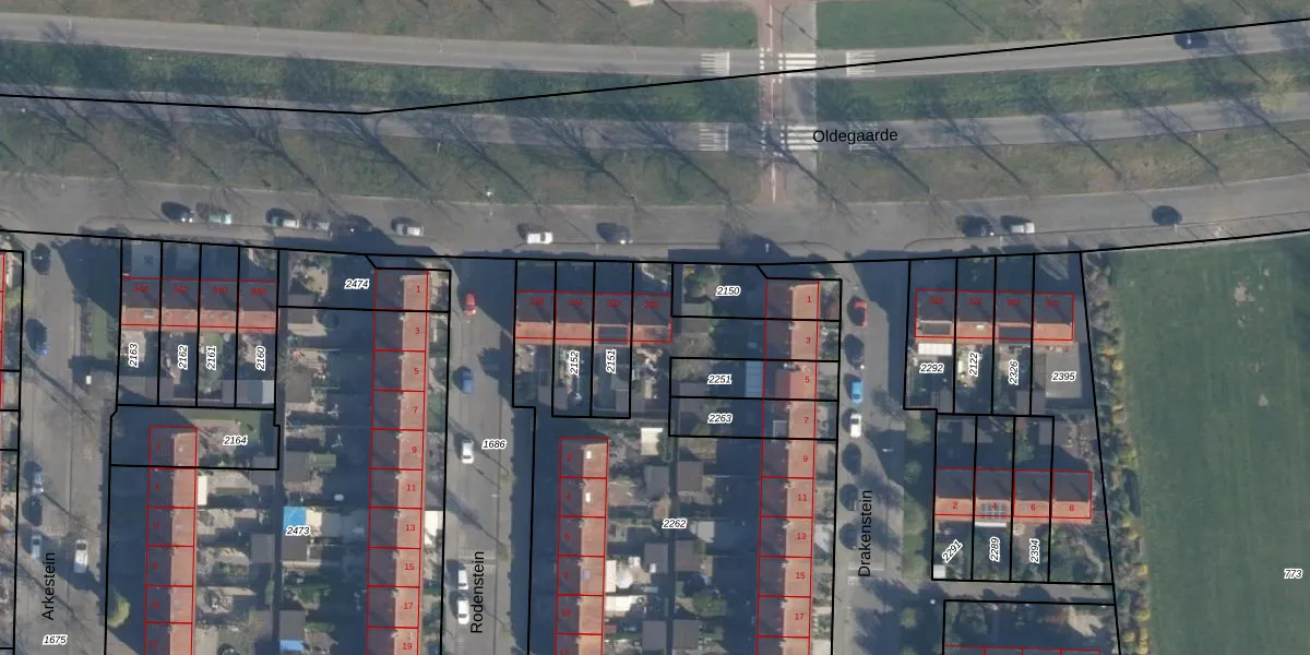 Het perceel waarop Oldegaarde 330 staat heeft een oppervlakte van 2390 m². Dit is een zeer groot perceel. De perceeloppervlakte wordt geregistreerd door het Kadaster. Gedetailleerde informatie over de maten van dit perceel kunt u vinden in het rapport Kadastrale kaart met maatvoering van Oldegaarde 330.