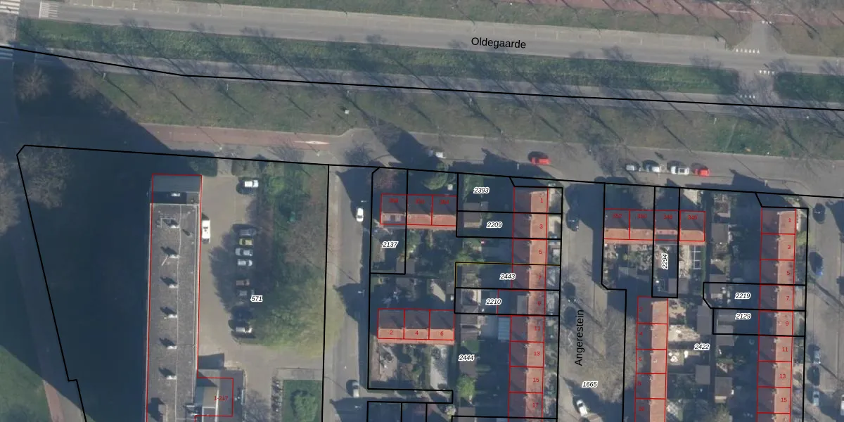 Het perceel waarop Oldegaarde 356 staat heeft een oppervlakte van 2166 m². Dit is een zeer groot perceel. De perceeloppervlakte wordt geregistreerd door het Kadaster. Gedetailleerde informatie over de maten van dit perceel kunt u vinden in het rapport Kadastrale kaart met maatvoering van Oldegaarde 356.