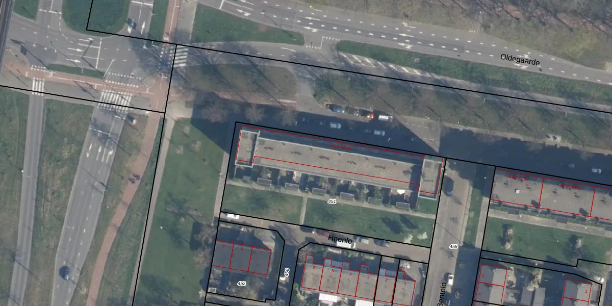 Het perceel waarop Oldegaarde 450-A staat heeft een oppervlakte van 2085 m². Dit is een zeer groot perceel. De perceeloppervlakte wordt geregistreerd door het Kadaster. Gedetailleerde informatie over de maten van dit perceel kunt u vinden in het rapport Kadastrale kaart met maatvoering van Oldegaarde 450-A.