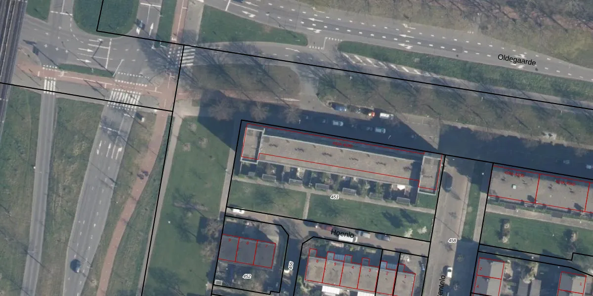 Oldegaarde 452-A is gelegen op kadastraal perceel CLS00K451. Deze kadastrale aanduiding is uniek en wordt gebruikt door het Kadaster om eigendomsrechten en andere zakelijke rechten vast te leggen. Het perceel maakt onderdeel uit van de kadastrale gemeente Charlois.