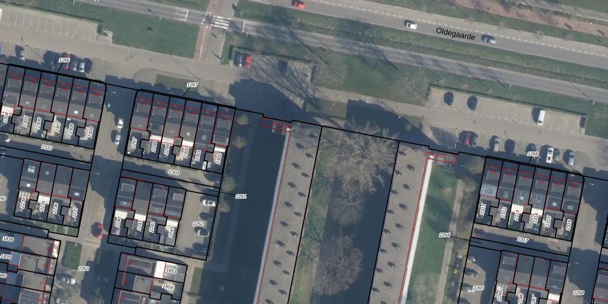Oldegaarde 568-D is gelegen op kadastraal perceel CLS00L2077. Deze kadastrale aanduiding is uniek en wordt gebruikt door het Kadaster om eigendomsrechten en andere zakelijke rechten vast te leggen. Het perceel maakt onderdeel uit van de kadastrale gemeente Charlois.