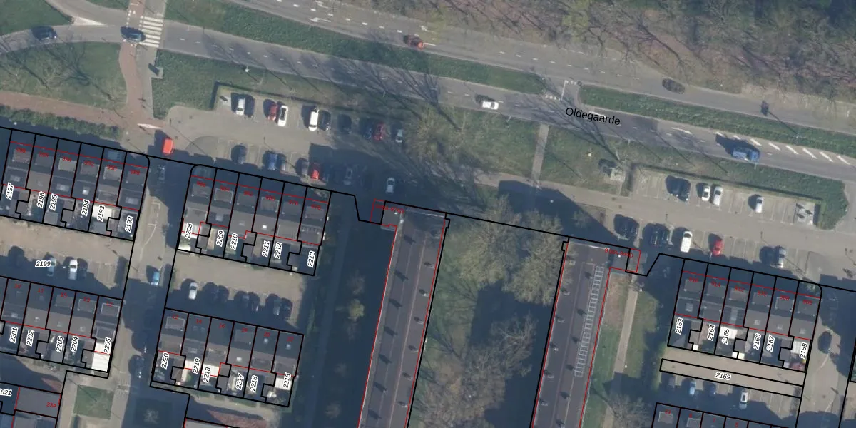 Oldegaarde 956-B is gelegen op kadastraal perceel CLS00L3281. Deze kadastrale aanduiding is uniek en wordt gebruikt door het Kadaster om eigendomsrechten en andere zakelijke rechten vast te leggen. Het perceel maakt onderdeel uit van de kadastrale gemeente Charlois.