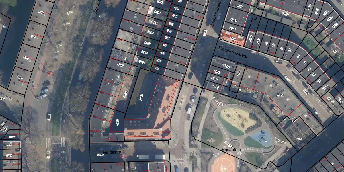 Oleanderstraat 117 is gelegen op kadastraal perceel CLS00G2654. Deze kadastrale aanduiding is uniek en wordt gebruikt door het Kadaster om eigendomsrechten en andere zakelijke rechten vast te leggen. Het perceel maakt onderdeel uit van de kadastrale gemeente Charlois.