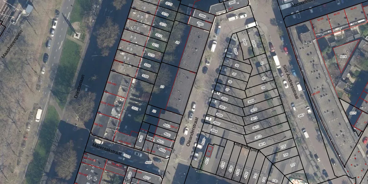 Oleanderstraat 29 is gelegen op kadastraal perceel CLS00G23. Deze kadastrale aanduiding is uniek en wordt gebruikt door het Kadaster om eigendomsrechten en andere zakelijke rechten vast te leggen. Het perceel maakt onderdeel uit van de kadastrale gemeente Charlois.