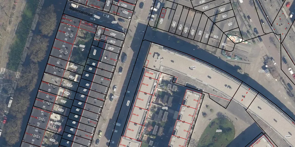 Oleanderstraat 34-B is gelegen op kadastraal perceel CLS00G5541. Deze kadastrale aanduiding is uniek en wordt gebruikt door het Kadaster om eigendomsrechten en andere zakelijke rechten vast te leggen. Het perceel maakt onderdeel uit van de kadastrale gemeente Charlois.