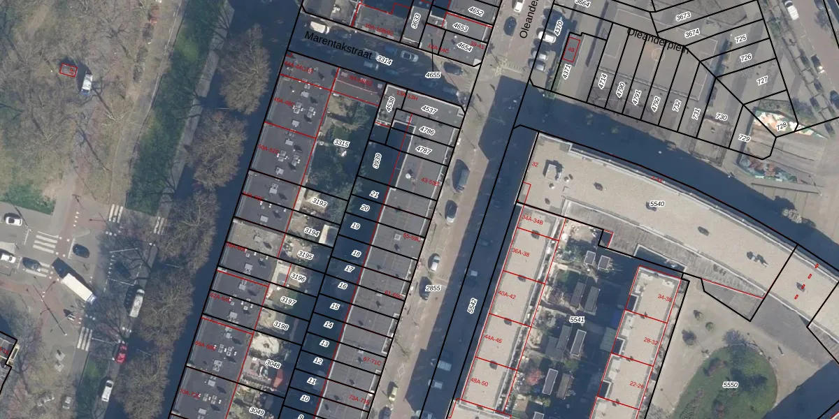 Oleanderstraat 53-B is gelegen op kadastraal perceel CLS00G21. Deze kadastrale aanduiding is uniek en wordt gebruikt door het Kadaster om eigendomsrechten en andere zakelijke rechten vast te leggen. Het perceel maakt onderdeel uit van de kadastrale gemeente Charlois.