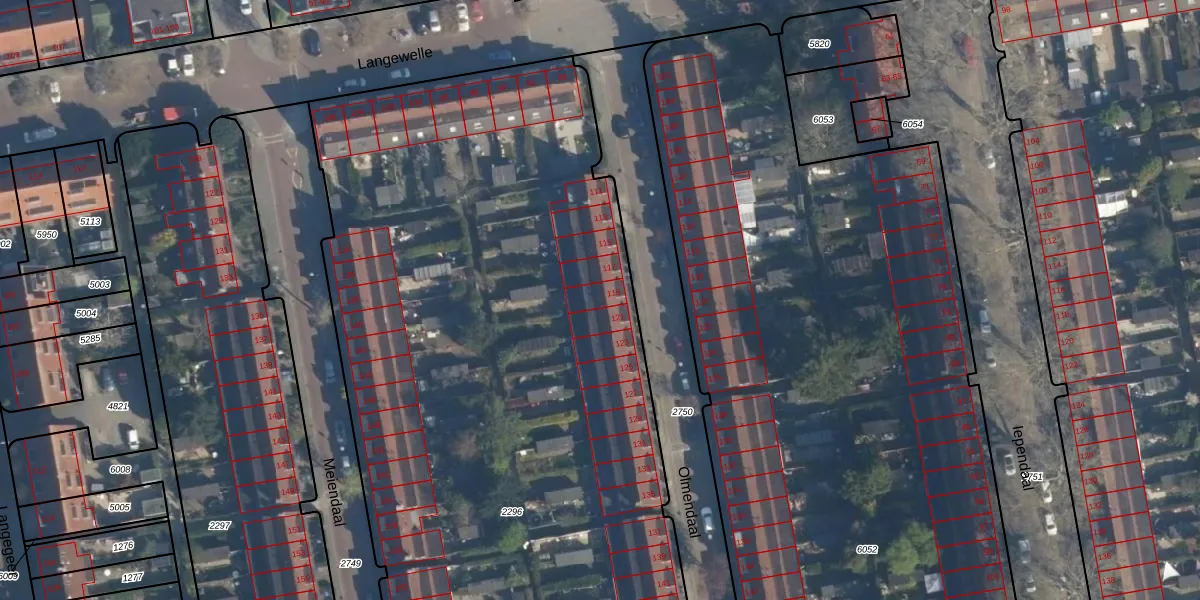Het perceel waarop Olmendaal 119 staat heeft een oppervlakte van 6990 m². Dit is een zeer groot perceel. De perceeloppervlakte wordt geregistreerd door het Kadaster. Gedetailleerde informatie over de maten van dit perceel kunt u vinden in het rapport Kadastrale kaart met maatvoering van Olmendaal 119.