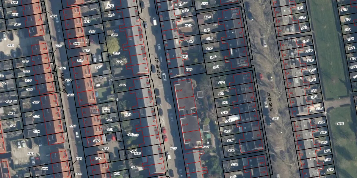 Het perceel waarop Olmendaal 36 staat heeft een oppervlakte van 2055 m². Dit is een zeer groot perceel. De perceeloppervlakte wordt geregistreerd door het Kadaster. Gedetailleerde informatie over de maten van dit perceel kunt u vinden in het rapport Kadastrale kaart met maatvoering van Olmendaal 36.