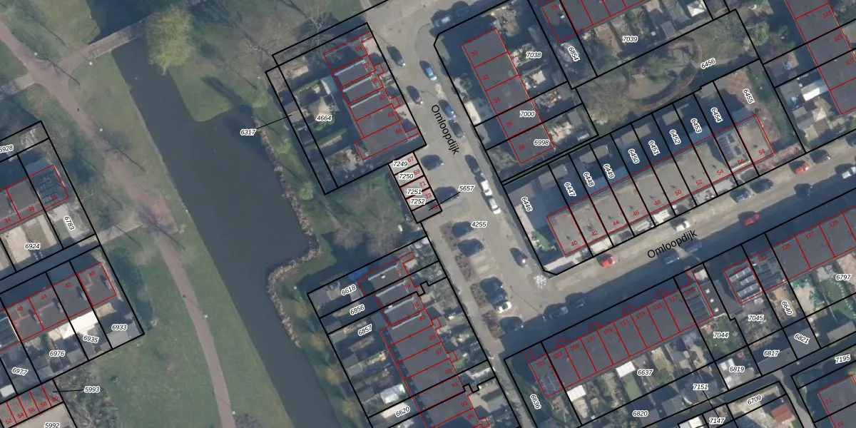 Het perceel waarop Omloopdijk 75 staat heeft een oppervlakte van 20 m². Dit is een klein perceel. De perceeloppervlakte wordt geregistreerd door het Kadaster. Gedetailleerde informatie over de maten van dit perceel kunt u vinden in het rapport Kadastrale kaart met maatvoering van Omloopdijk 75.