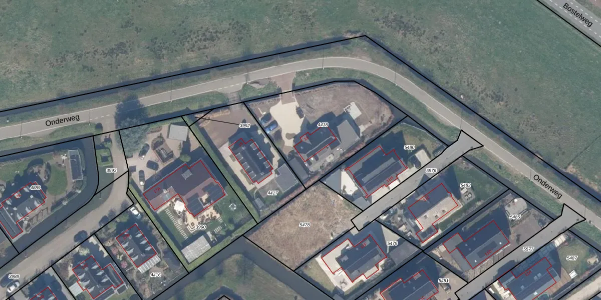 Gebruik de zoekbalk of klik op een perceel voor informatie over de adressen binnen dit perceel.