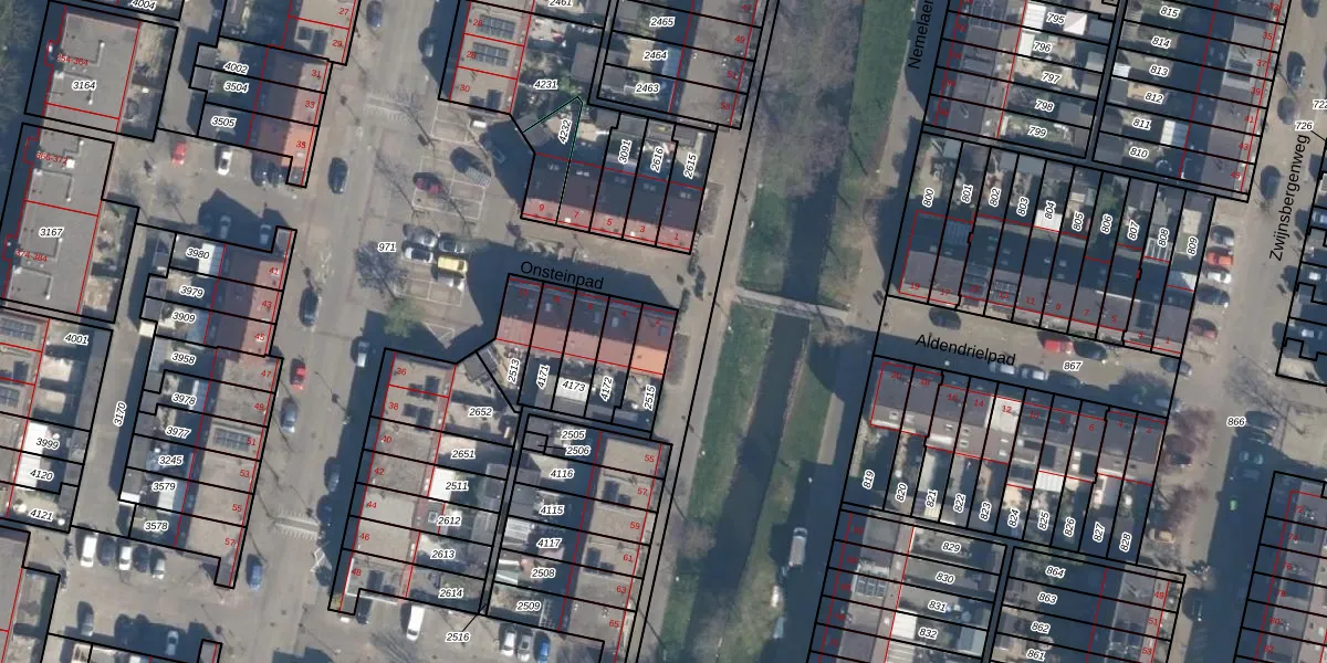 Gebruik de zoekbalk of klik op een perceel voor informatie over de adressen binnen dit perceel.