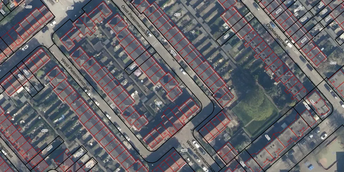 Het perceel waarop Oost-Pietermanstraat 25 staat heeft een oppervlakte van 3600 m². Dit is een zeer groot perceel. De perceeloppervlakte wordt geregistreerd door het Kadaster. Gedetailleerde informatie over de maten van dit perceel kunt u vinden in het rapport Kadastrale kaart met maatvoering van Oost-Pietermanstraat 25.