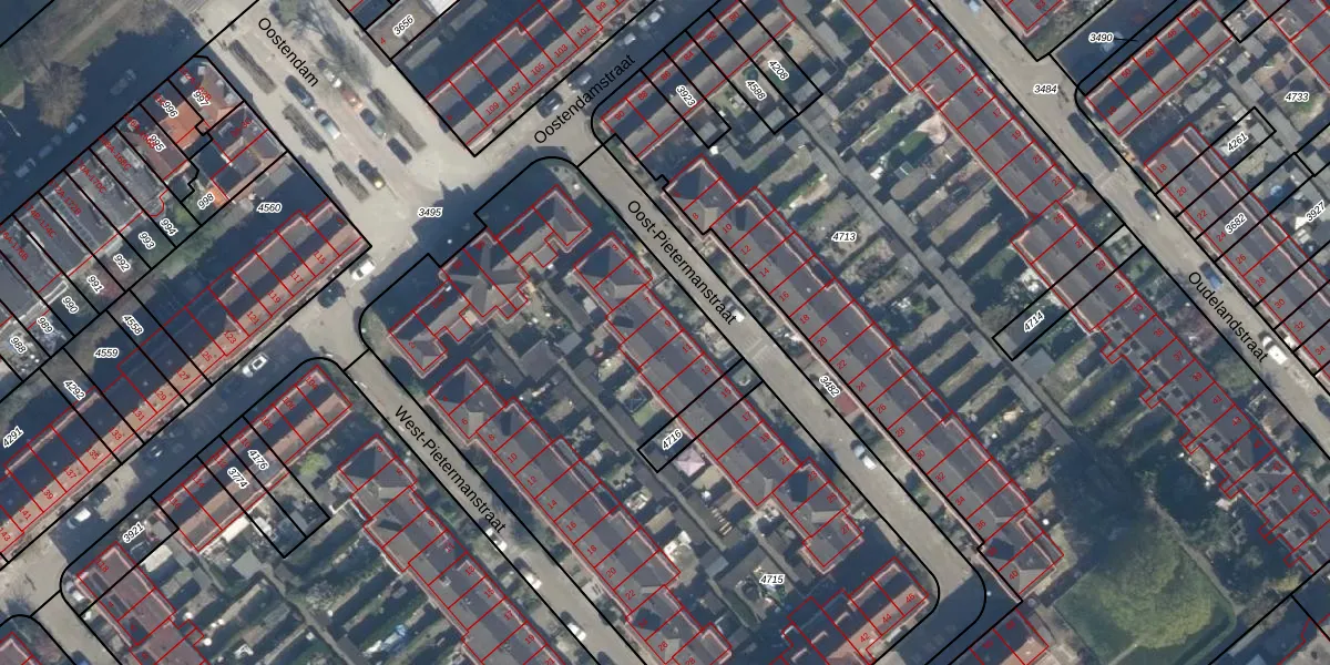 Oost-Pietermanstraat 9 is gelegen op kadastraal perceel CLS00F4715. Deze kadastrale aanduiding is uniek en wordt gebruikt door het Kadaster om eigendomsrechten en andere zakelijke rechten vast te leggen. Het perceel maakt onderdeel uit van de kadastrale gemeente Charlois.