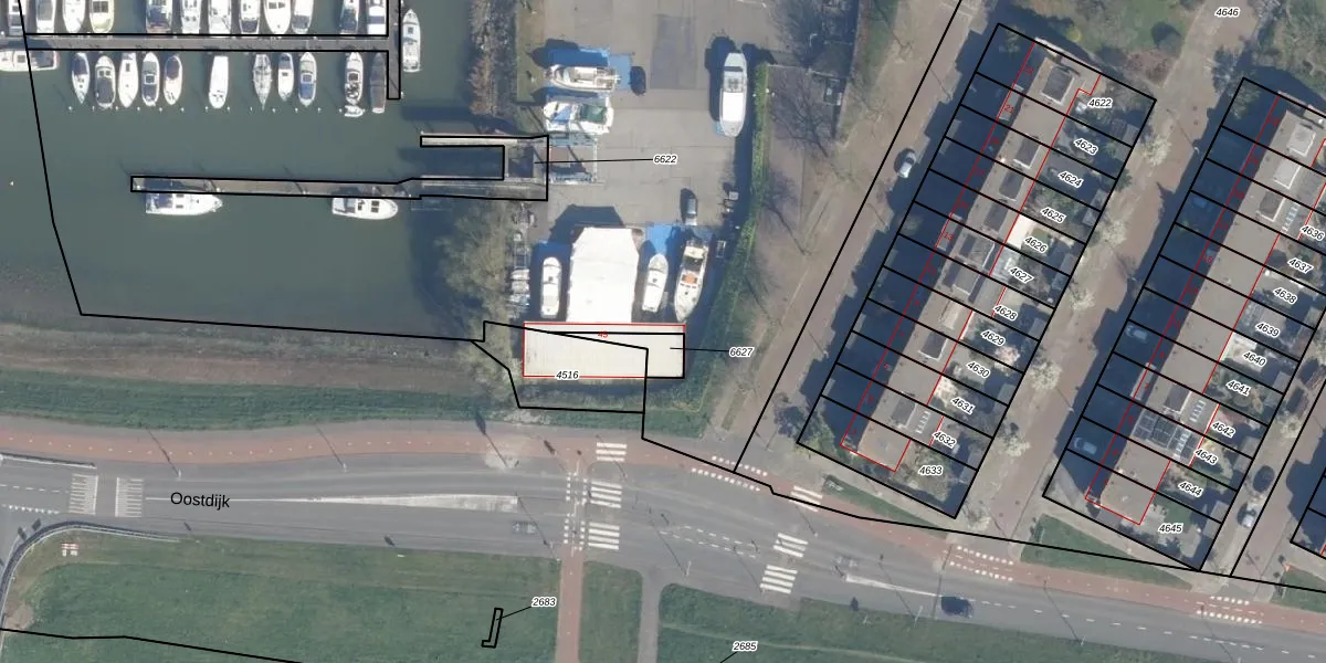 Oostdijk 45 is gelegen op kadastraal perceel ISM01D6628. Deze kadastrale aanduiding is uniek en wordt gebruikt door het Kadaster om eigendomsrechten en andere zakelijke rechten vast te leggen. Het perceel maakt onderdeel uit van de kadastrale gemeente IJsselmonde.
