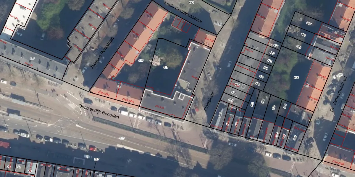 Het adres ligt op het perceel RTD04-AE-911, dat zich in de kadastrale gemeente Rotterdam bevindt. Het perceel is kleiner dan gemiddeld in Rotterdam. Het perceel is 1160 m² groot, terwijl het gemiddelde ligt op 1240,47 m². Het grootste perceel in de kadastrale gemeente is 17,3 ha. Het kleinste perceel heeft een oppervlakte van 0 m². Op het perceel zijn 37 adressen aanwezig. In de Basisregistratie Kadaster (BRK) werden de grenzen van het perceel geregistreerd op 16-01-2003.