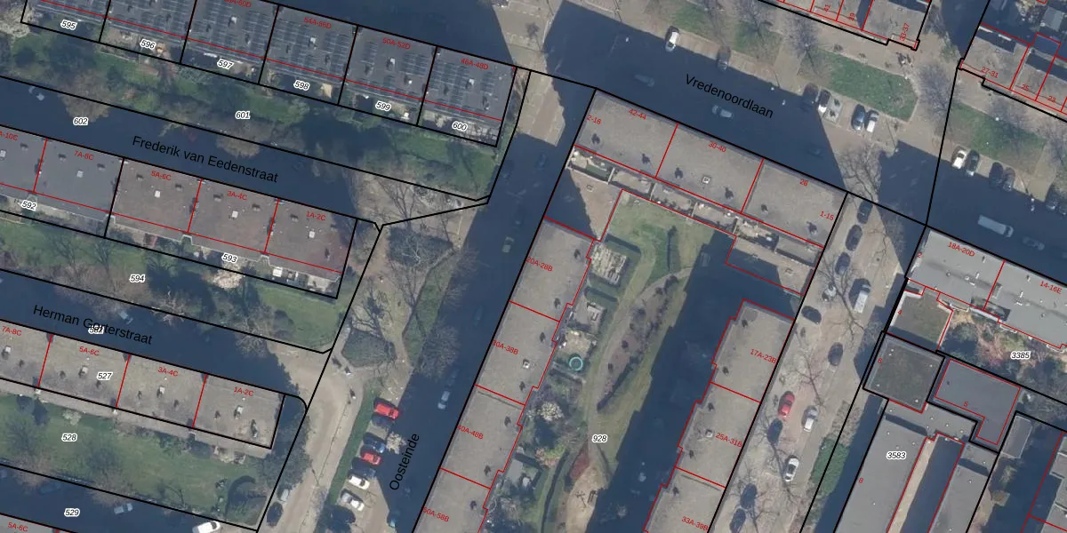 Oosteinde 24-A is gelegen op kadastraal perceel RTD04AE928. Deze kadastrale aanduiding is uniek en wordt gebruikt door het Kadaster om eigendomsrechten en andere zakelijke rechten vast te leggen. Het perceel maakt onderdeel uit van de kadastrale gemeente Rotterdam.