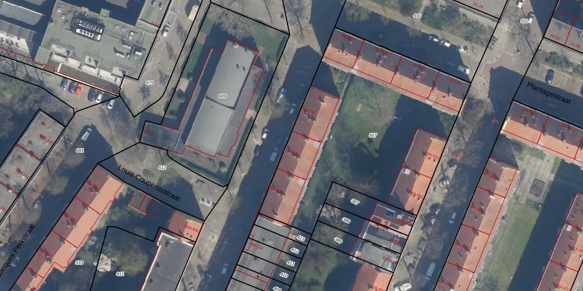 Het adres ligt op het perceel RTD04-AE-507, dat zich in de kadastrale gemeente Rotterdam bevindt. De gemiddelde perceeloppervlakte in de kadastrale gemeente Rotterdam is 1239,97 m². Dit perceel is met zijn 2883 m² dus groter dan gemiddeld. Het grootste perceel in de kadastrale gemeente is 17,3 ha. Het kleinste perceel heeft een oppervlakte van 0 m². Er zijn 48 adressen aanwezig op het perceel. In de Basisregistratie Kadaster (BRK) werden de grenzen van het perceel geregistreerd op 16-01-2003.