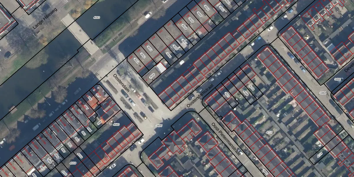 Het perceel waarop Oostendamstraat 107 staat heeft een oppervlakte van 3025 m². Dit is een zeer groot perceel. De perceeloppervlakte wordt geregistreerd door het Kadaster. Gedetailleerde informatie over de maten van dit perceel kunt u vinden in het rapport Kadastrale kaart met maatvoering van Oostendamstraat 107.
