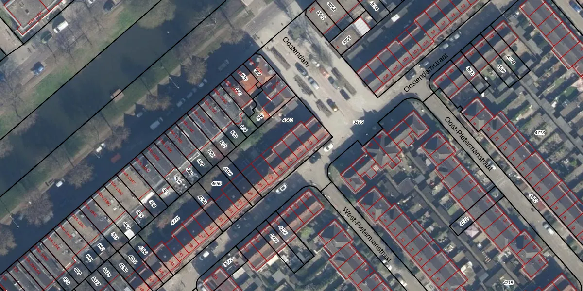 Het perceel waarop Oostendamstraat 117 staat heeft een oppervlakte van 602 m². Dit is een groot perceel. De perceeloppervlakte wordt geregistreerd door het Kadaster. Gedetailleerde informatie over de maten van dit perceel kunt u vinden in het rapport Kadastrale kaart met maatvoering van Oostendamstraat 117.