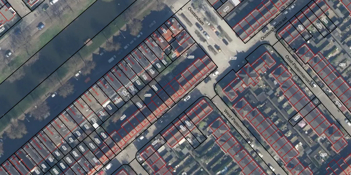 Het perceel waarop Oostendamstraat 123 staat heeft een oppervlakte van 602 m². Dit is een groot perceel. De perceeloppervlakte wordt geregistreerd door het Kadaster. Gedetailleerde informatie over de maten van dit perceel kunt u vinden in het rapport Kadastrale kaart met maatvoering van Oostendamstraat 123.