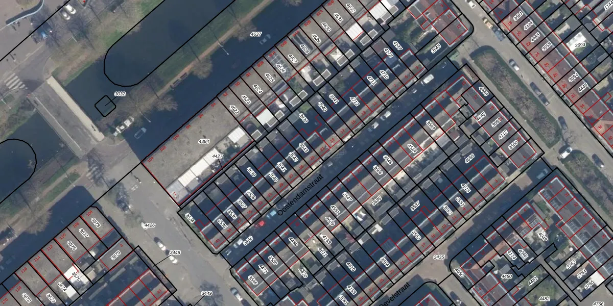 Het perceel waarop Oostendamstraat 23 staat heeft een oppervlakte van 85 m². Dit is een klein perceel. De perceeloppervlakte wordt geregistreerd door het Kadaster. Gedetailleerde informatie over de maten van dit perceel kunt u vinden in het rapport Kadastrale kaart met maatvoering van Oostendamstraat 23.