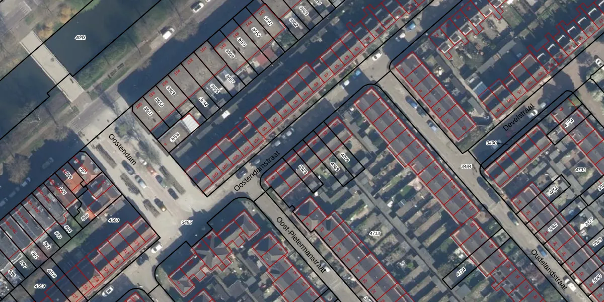 Het perceel waarop Oostendamstraat 84 staat heeft een oppervlakte van 6079 m². Dit is een zeer groot perceel. De perceeloppervlakte wordt geregistreerd door het Kadaster. Gedetailleerde informatie over de maten van dit perceel kunt u vinden in het rapport Kadastrale kaart met maatvoering van Oostendamstraat 84.