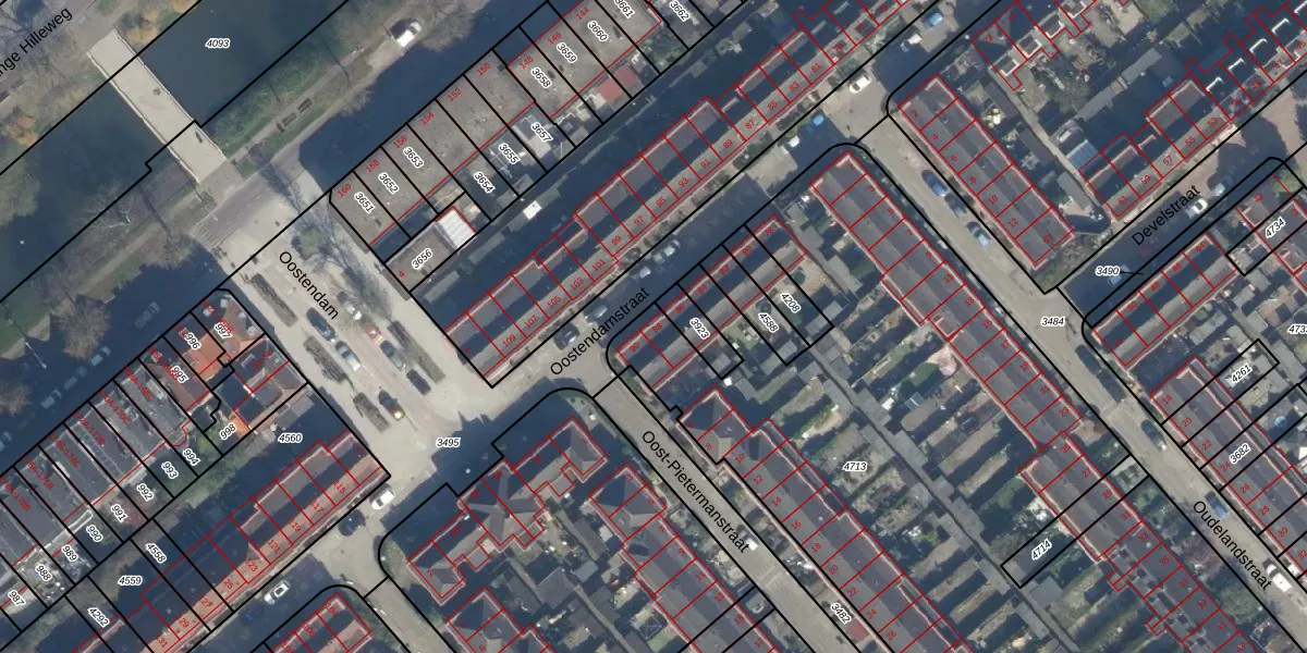 Het perceel waarop Oostendamstraat 88 staat heeft een oppervlakte van 6079 m². Dit is een zeer groot perceel. De perceeloppervlakte wordt geregistreerd door het Kadaster. Gedetailleerde informatie over de maten van dit perceel kunt u vinden in het rapport Kadastrale kaart met maatvoering van Oostendamstraat 88.
